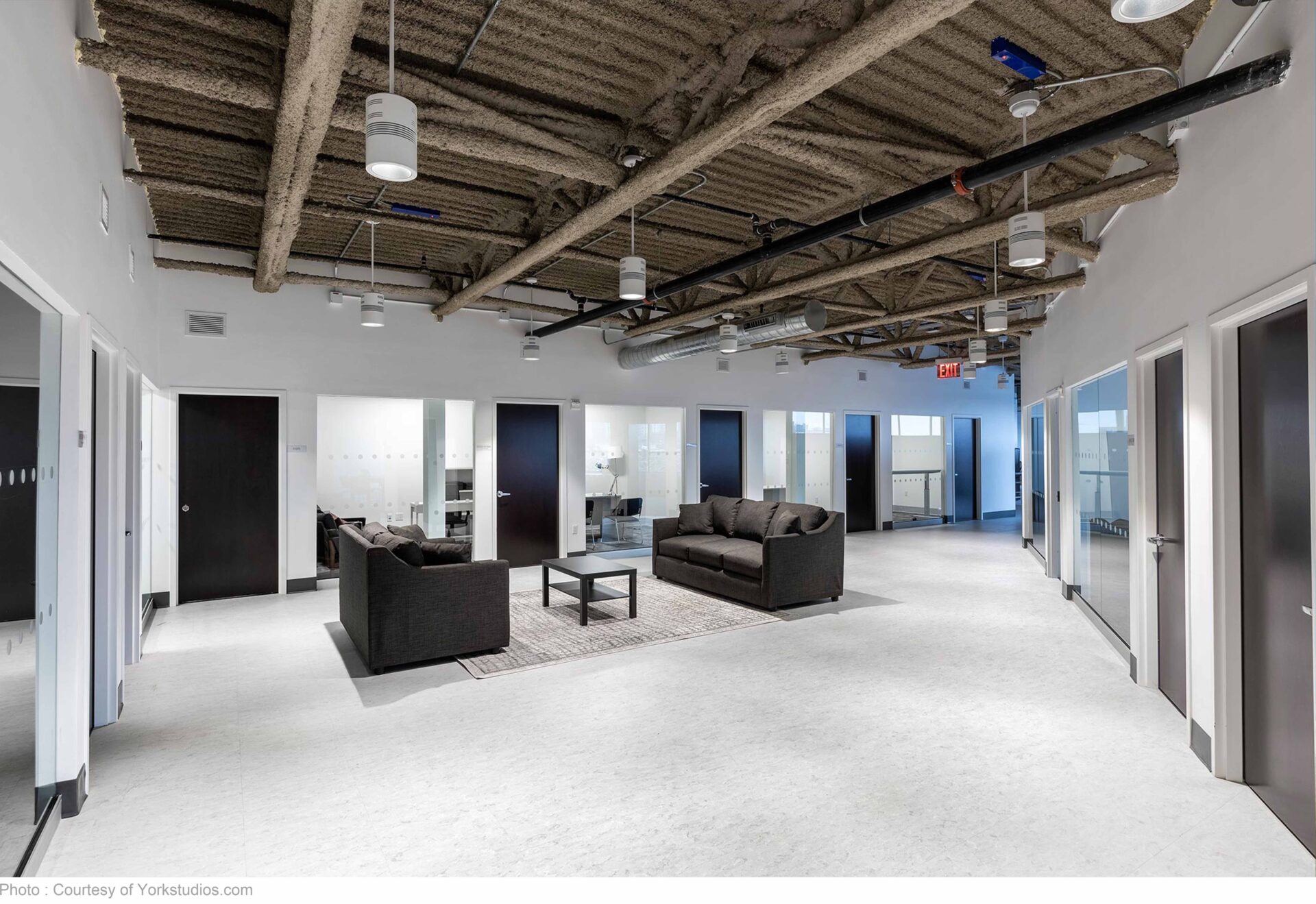 York Studios has undertaken the construction of what will be the largest motion picture and television production studio outside of Hollywood, California. What started as an empty 10-acre lot in a neglected industrial neighborhood will be an impressive two-building campus housing 10 sound stages totaling 160,000sf with over 107,000 sf support spaces, shops & offices. This industry has very specialized engineering requirements that far exceed every standard construction practice. The architect was tasked with merging these complex requirements with the client’s demanding architectural program.